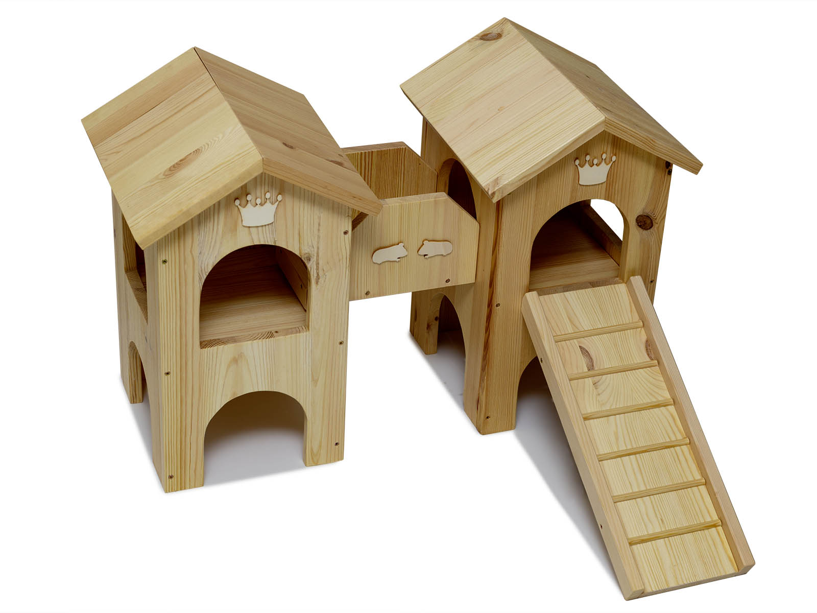 Die Meerchen-Rampe ist eine kleine Rampe passend zu unserem Meerchenschloss. Die Rampe ist vorne abgeschrägt und lässt sich mit der Keilleiste perfekt am oberen Turmeingang anbringen. Aber auch für andere Meerschweinchenmöbel ist sie gut geeignet, hier können Sie auch ein Scharnier anstelle der Keilleiste wählen. Für den Turm empfehlen wir aber immer die Keilleiste.