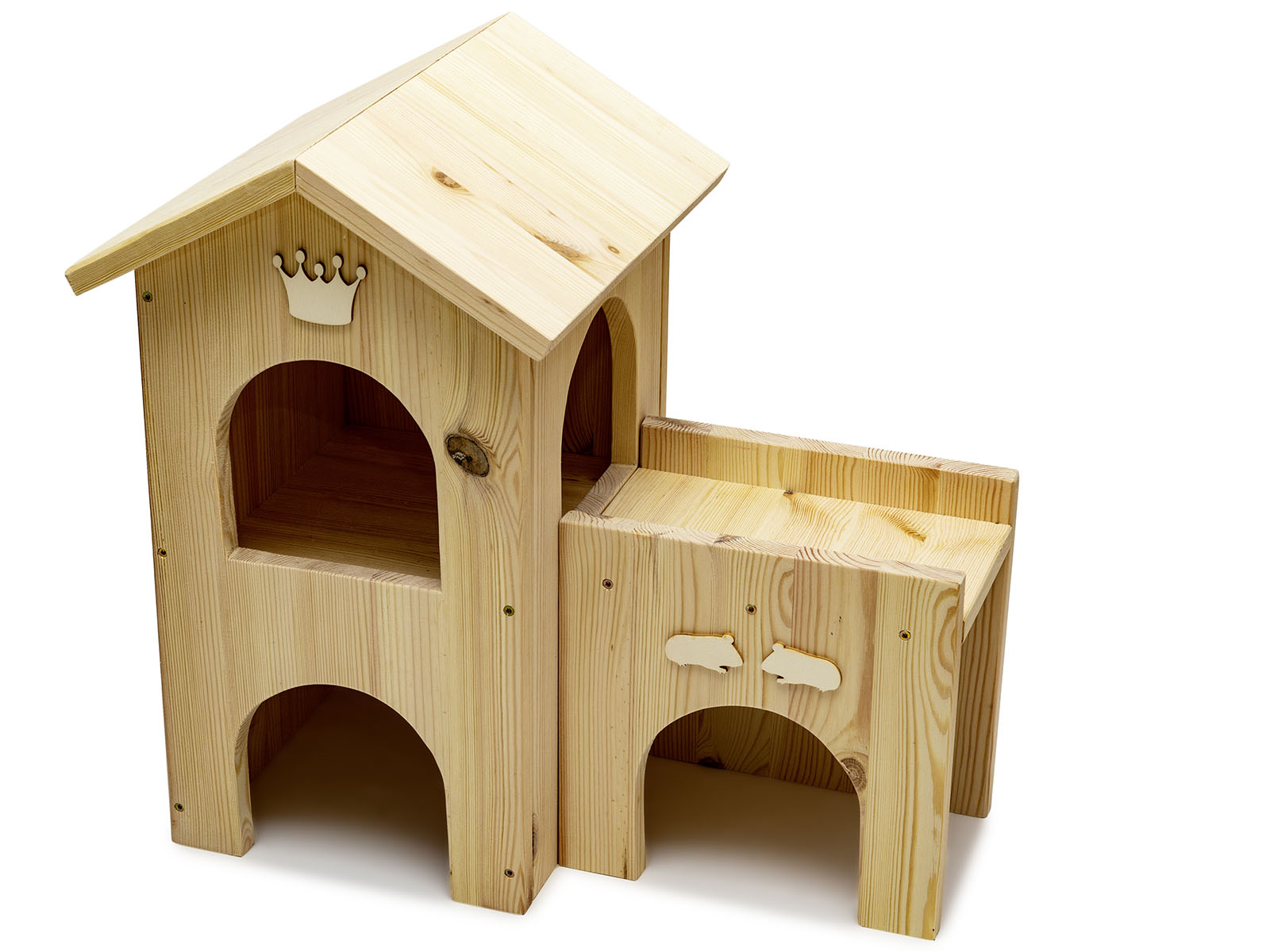 Die Tunnelbrücke "Meerchenschloss" ist eine Mischung aus Brücke und Tunnel und passt perfekt an unseren Meerchen-Turm. Er verbindet die unteren EIngänge mit einem Tunnel sowie die oberen durch eine Brücke. An der Vorderseite ist zudem ein kleiner Seiteineingang angebracht, darüber befinden sich zwei kleine Meerschweinchen.