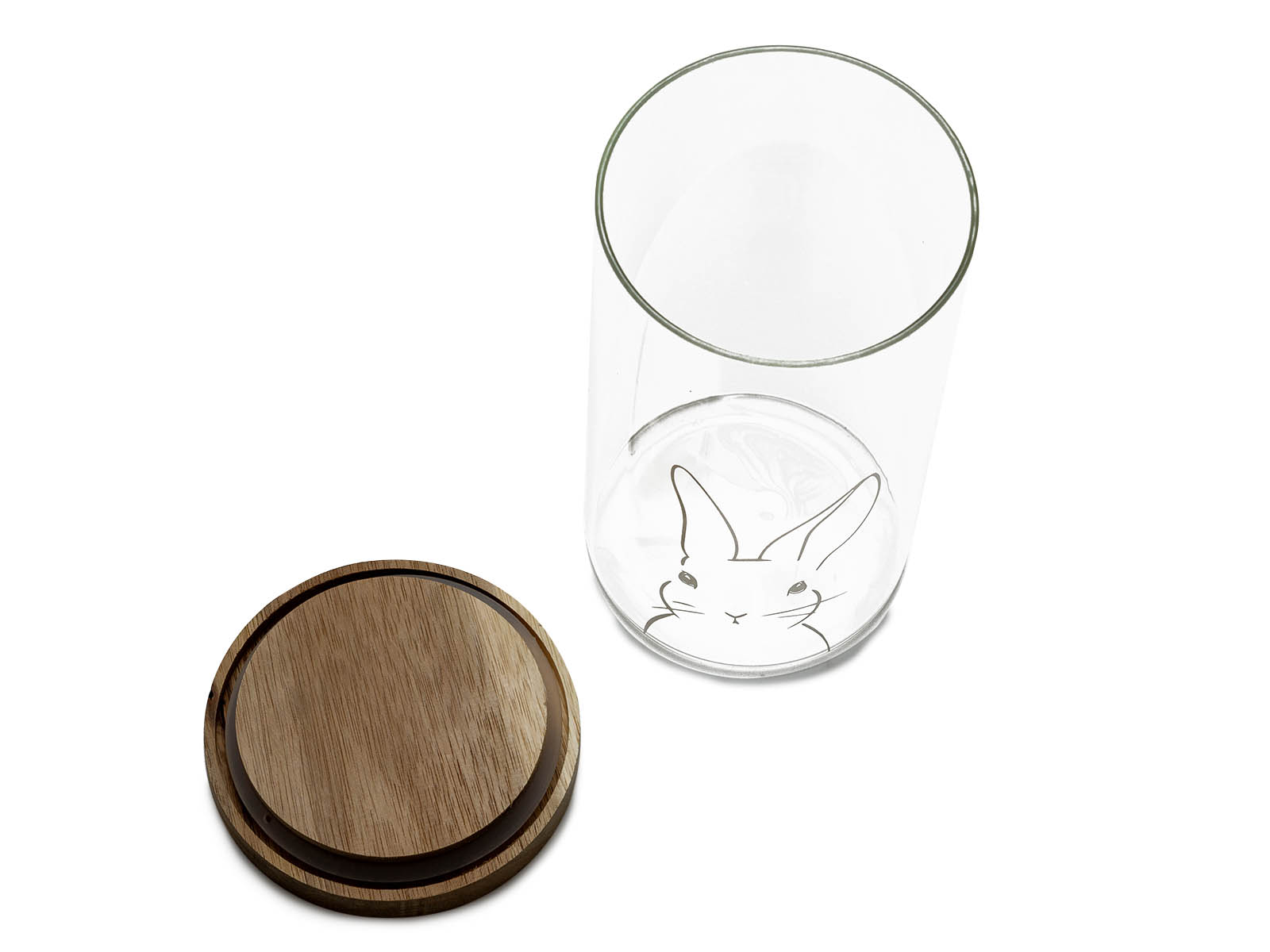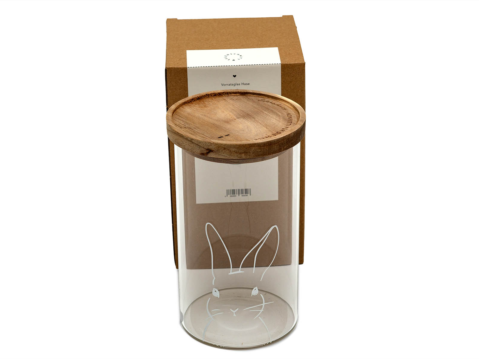 Das Glas kann beispielsweise dekorativ im Regal mit Süßigkeiten gefüllt platziert werden, oder auch als Vorratsglas für Reis, Zucker oder ähnliches verwendet werden. Ideal aber natürlich auch geeignet um die Leckerli der Langohren aufzubewahren :-)