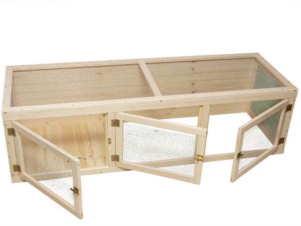 Draht, aufklappbar: der Deckel mit Volierendraht kann geöffnet werden.