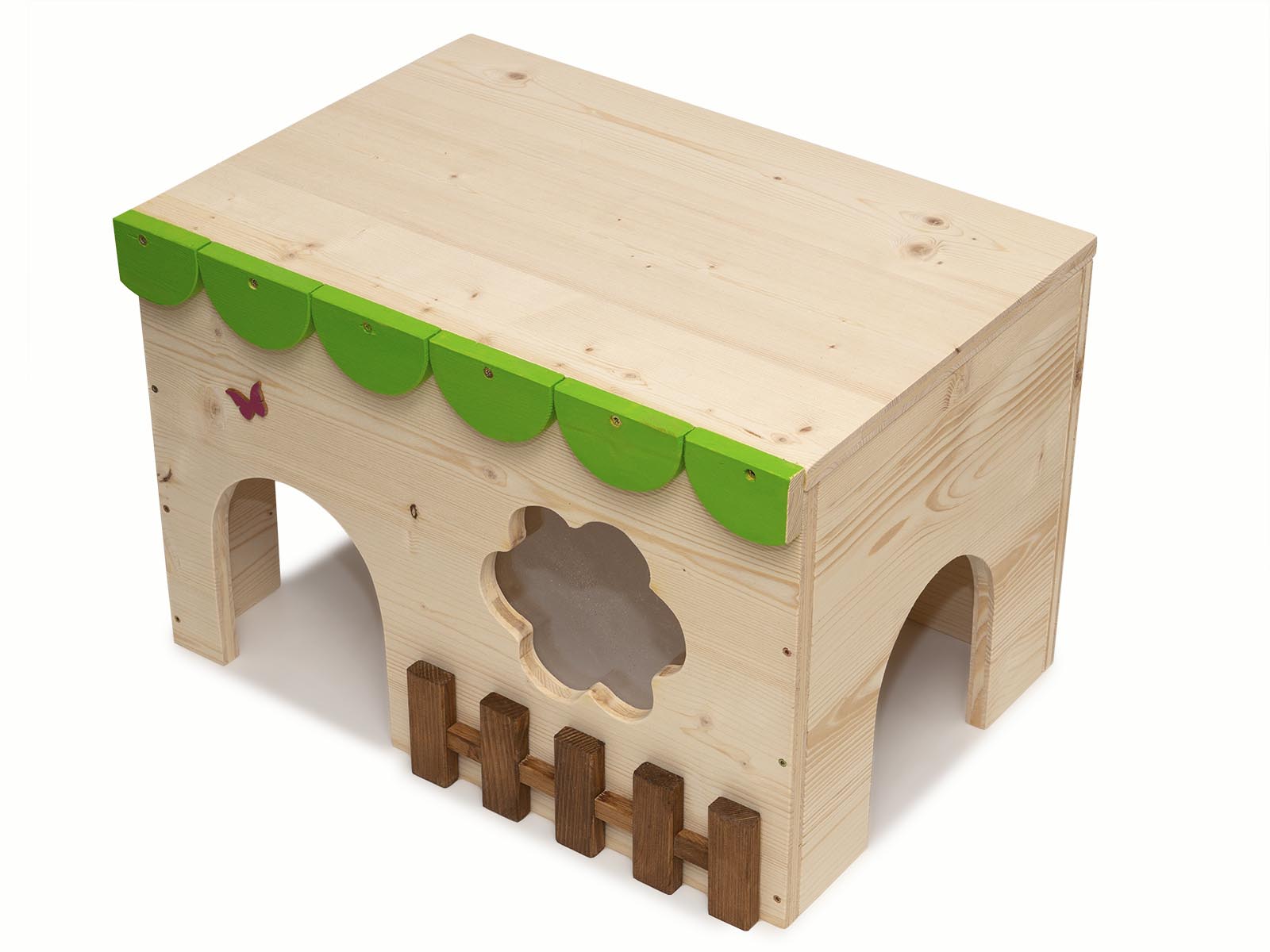 Wir verwenden ausschließlich Lacke und Schutzlasuren nach DIN EN 71.3. Diese ist unschädlich, sollten Ihre Lieblinge daran nagen!