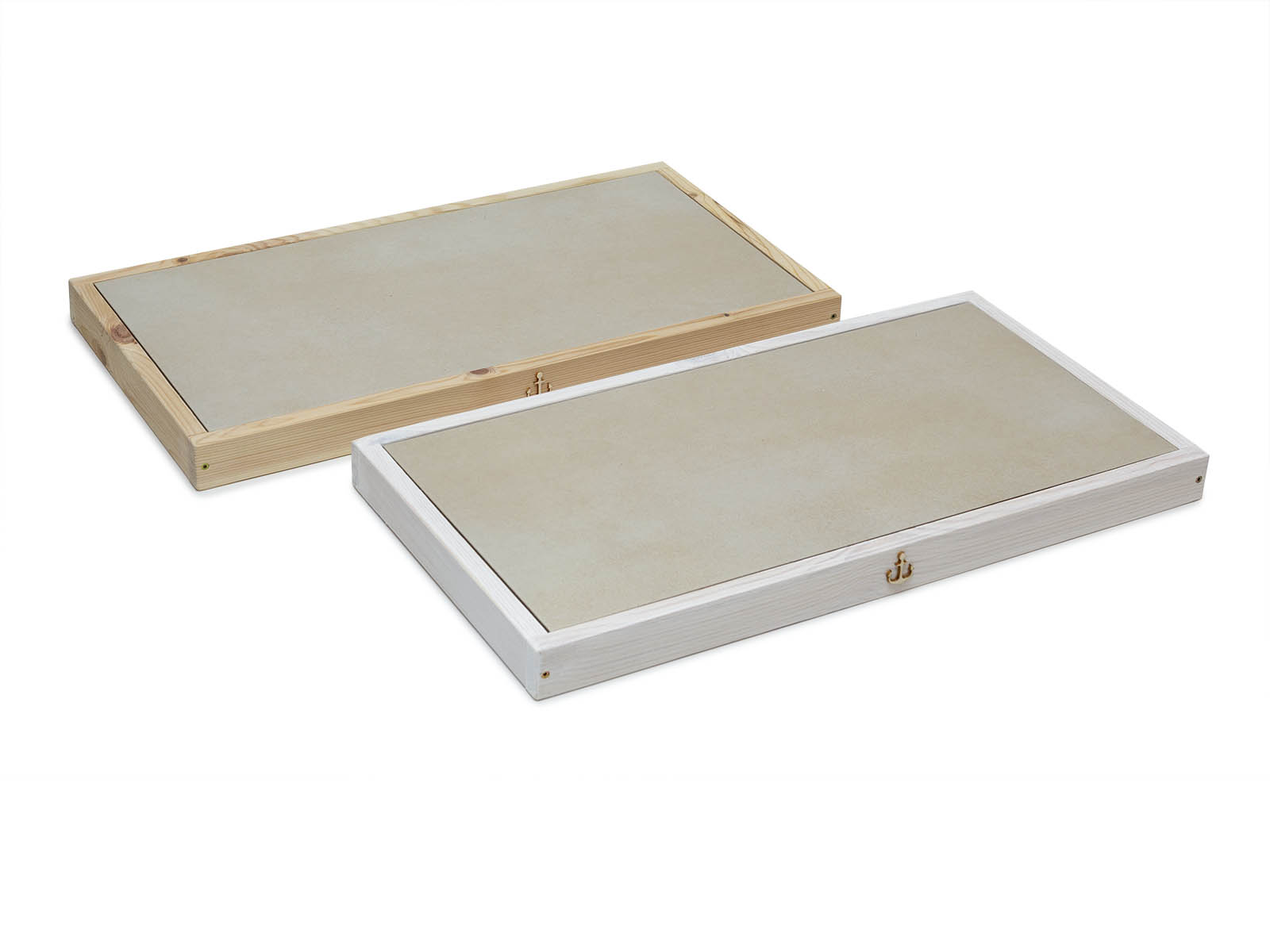 Wahlweise erhältlich in natur, mit einer Schutzlasur in der Farbe „Nussbaum", Klarlack oder in shabby weiß (mit einem einfachen, nicht komplett deckenden weißen Farbanstrich, bei dem das Holz noch leicht durchscheint).