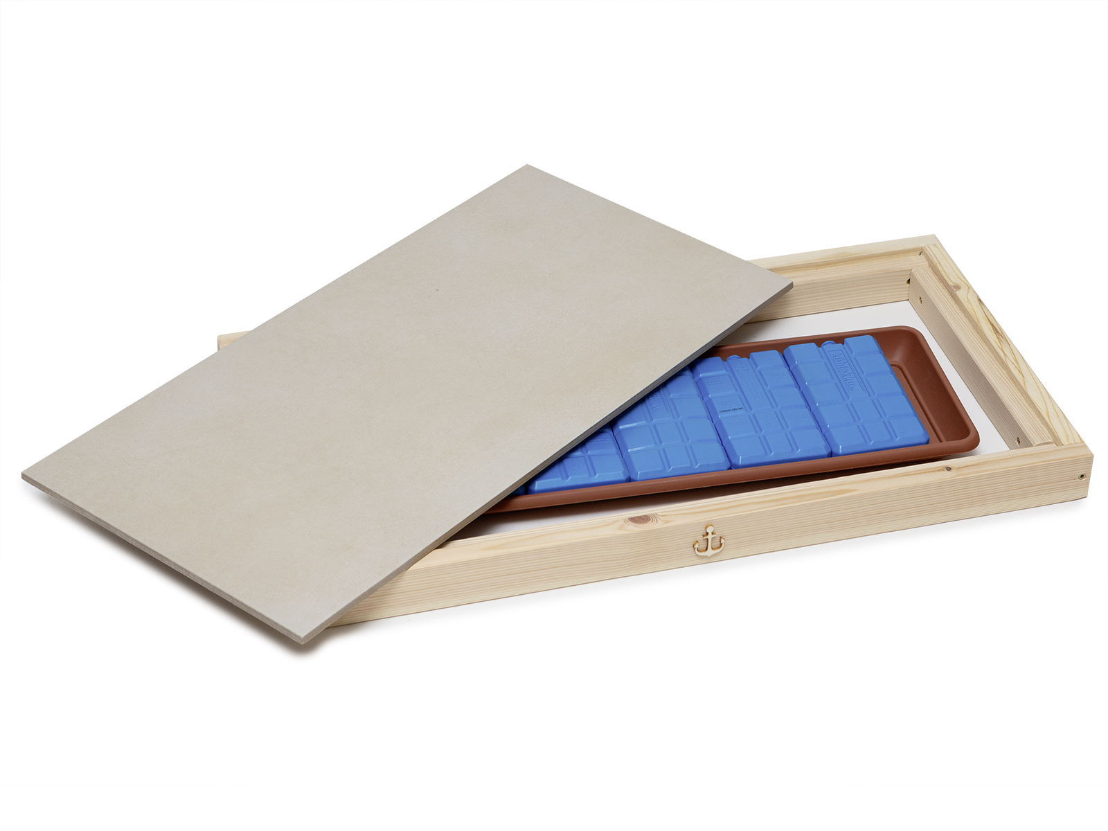 Sie können selbst wählen ob sie die Kühlinsel mit Kunststoffschale, Kühlakkus oder ohne bestellen möchten. Die meisten handelsüblichen Kühlakkus passen hier drunter.