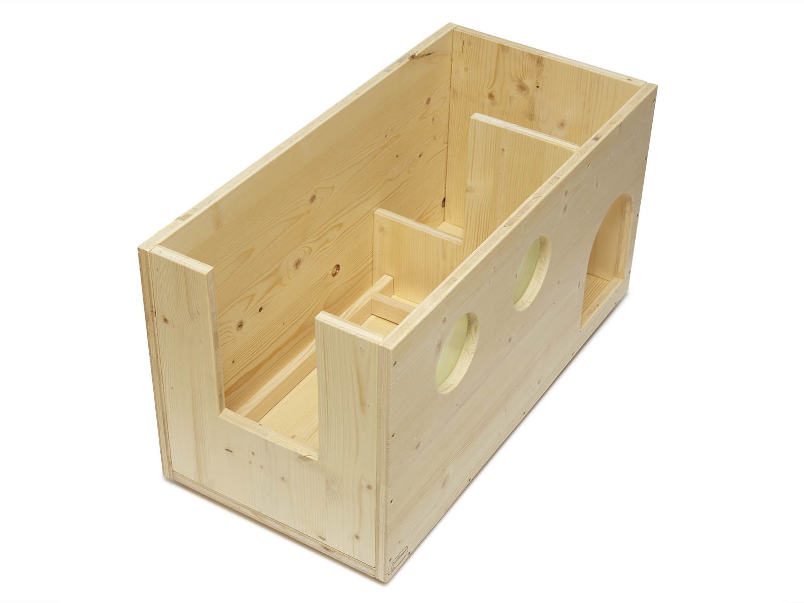 Wir verwenden ausschließlich Lacke und Schutzlasuren nach DIN EN 71.3. Diese ist unschädlich, sollten Ihre Lieblinge daran nagen!!