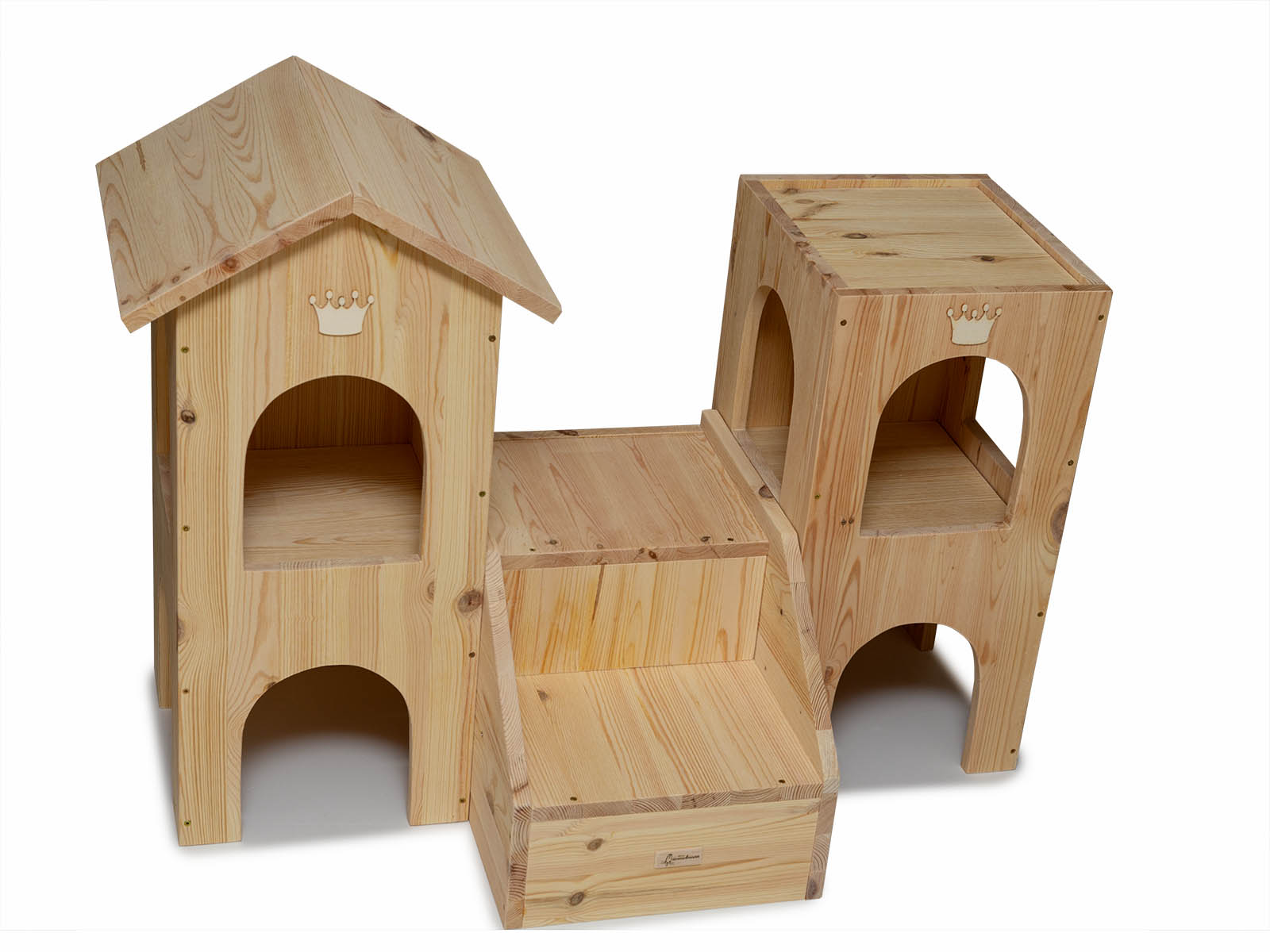 Wir verwenden ausschließlich Lacke und Schutzlasuren nach DIN EN 71.3. Diese sind unschädlich, sollten Ihre Lieblinge daran nagen!